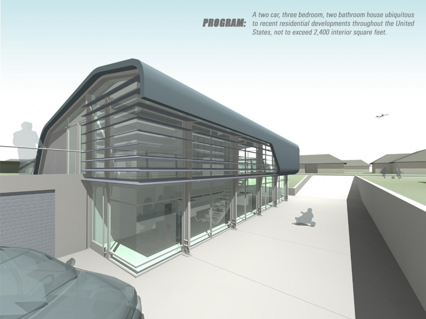 Created on the principle that the single-family dwelling is the testing ground for new design ideas, Terraform{a} looks to explore the impact of a single family suburban home design relative to sustainability, economics, and social issues. The program included a three-bedroom, two-bathroom, single-family house with a two-car garage, not exceeding 2,400 interior square feet and located on a 75-foot x 145-foot, ¼-acre lot.