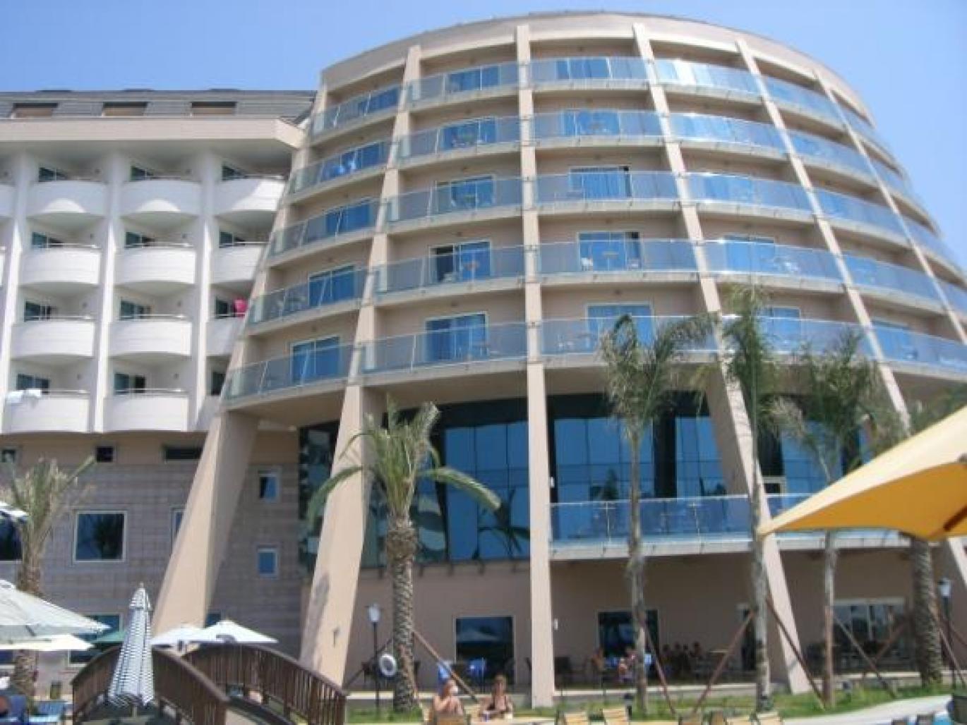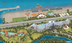 As its name reminds, it is a long beach resort hotel with 700 rooms and villas parallel to the shore. The core is remarked with a conic glazed building. The atriums of each block have different interior characteristics to break monotonity of long corridors.