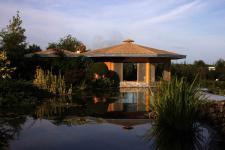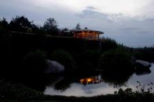 This is a country style house with the area of 58m2.This suit is a guest house located on water and all elements and lands cape around that are designed and execute by me.Thoes are included:water fall , artificial lake and landscape.The most important item in its design process that I tried not to disturb it,was respecting the nature.It should be like a glass house with traditional style.
