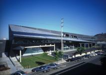 The new structure itself has a three-sided north end elevation, and a four sided south elevation. Over its 100 meter length, the building section transforms, changing its interior and exterior shape continuously as it moves from the triangle end to the square or the square end to the triangle. The building was intended to be divided among three tenants. Ogilvy occupies the ground floor theatre, with the stage positioned in the old warehouse, and the audience seating, outside, under the long span truss portion of the new structure. There are two full floors, lifted in the air, on the south end of the building, useable by one or two tenants. The steel frame structure approximates a plan grid on the south, facilitating a simple organization of tenant space on the two floors. The building center holds a glazed, elevator lobby on the ground floor, and open decks and bathrooms on floors two and three. The painted steel bathrooms and related mechanical equipment structures on the decks were prefabricated off the site and craned into place. Visitors enter the lobby at grade, and proceed up the elevator to open pedestrian walks on two and three, and then move either north or south into the tenant spaces. The north end, also designed for a single tenant, contains the second floor and a mezzanine above that opens to floor two below.
