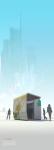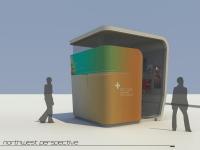 Art CUBE is a prototype that takes the common notion of the frame, a solid border that usually surrounds a picture or painting, and transforms this boundary into a temporary outdoor gallery space. This simple transformation is accomplished by extruding the frame and separating it into two halves. Next, one of the halves is rotated 90 degrees and then interlocked with the other half of the frame. The resulting gaps and spaces between the two pieces form the gallery enclosure and allow light and people to filter through the space. The result is a compact, yet sophisticated space that is secure and enhances the installation of work by selected artists.
