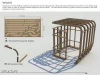 The structure of Art CUBE is created by interlocking a series of plywood ribs. These ribs would be laid out and cut from 4’ x 8’ sheets using a CNC router in order to maximize material usage and minimize waste. The CNC machine allows for greater accuracy and speed in the mass production of the structural ribs.
