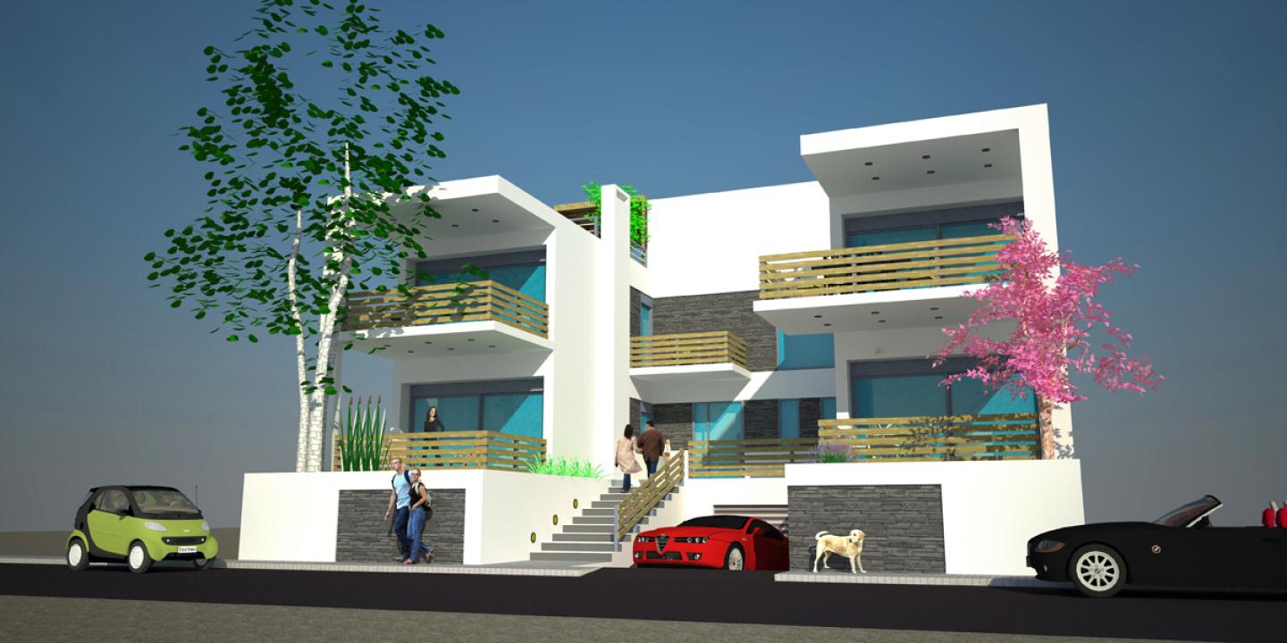 Each apartment comprises a spacy unified kitchen-dining-living area as well as two bedrooms and a bathroom. One of the bedrooms of each apartment has an extra elevated space which functions as an attic. At the bacement of the building there are the cars` parking lots and a series of storage rooms for the apartments. It will soon be completed.