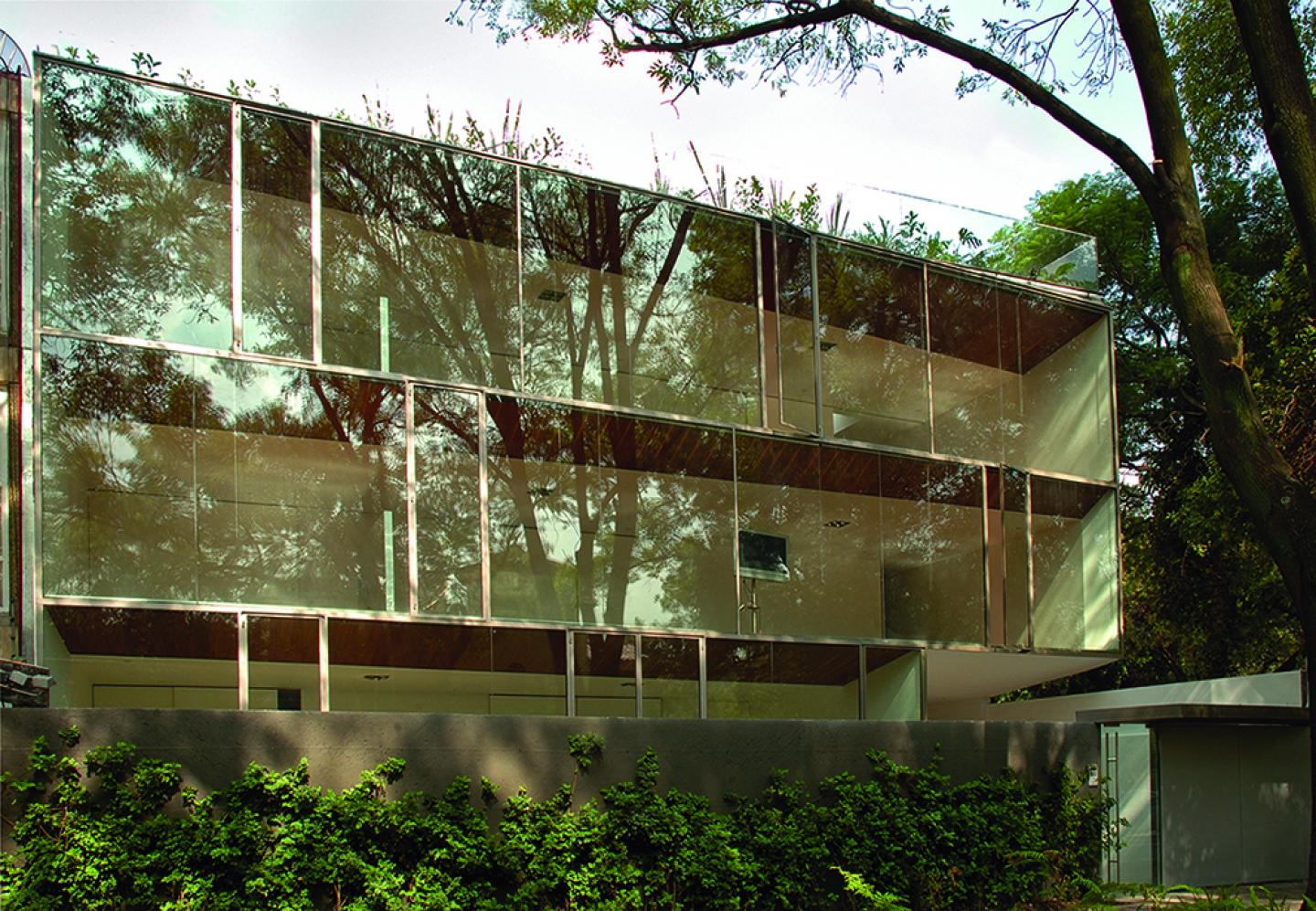 This building has 3 apartments looking onto the street as well as a 2-story house in the back that looks into an interior patio. The public areas are contained in a single space looking out to the street or into the interior void. There is a spectacular tree in front of the building, and a view to the park of Polanco. These conditions became the central design objective, as we wanted to flood the interior out to the street and the park. Therefore the facade responds to this principle of eliminating obstructions between the inside and outside, generating openness and continuity. Working with structural geometry, we managed to support the 15 m. span in a slab of 40 cm. with no columns that would interfere with the view; we then sharpened the floor slabs and walls to a minimum, hiding their edges in the facade.