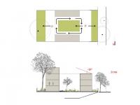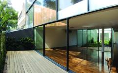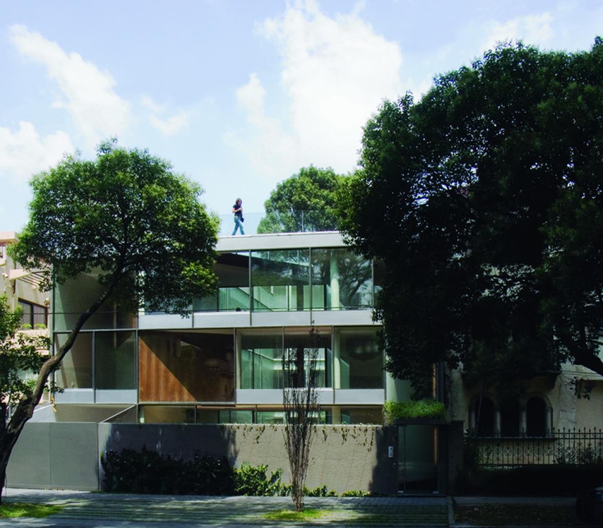 In Mexico City, in a residential area called Polanco, this four story building contains three apartments organized in relation to three gardens. The street setback creates the first garden, where the public activities take place. In the back it becomes private, looking out to a garden of ferns and a beautiful existing tree. The central garden generates an interior view, a void to bring in light and circulate freely around the apartment. To edit the view to the street, we created different triangular cuts in the three levels, providing the interior space with double heights that articulate themselves within the space on upper or lower floors, sometimes invading another apartment. The distribution of the program concentrates the service areas on the sides of the courtyard.