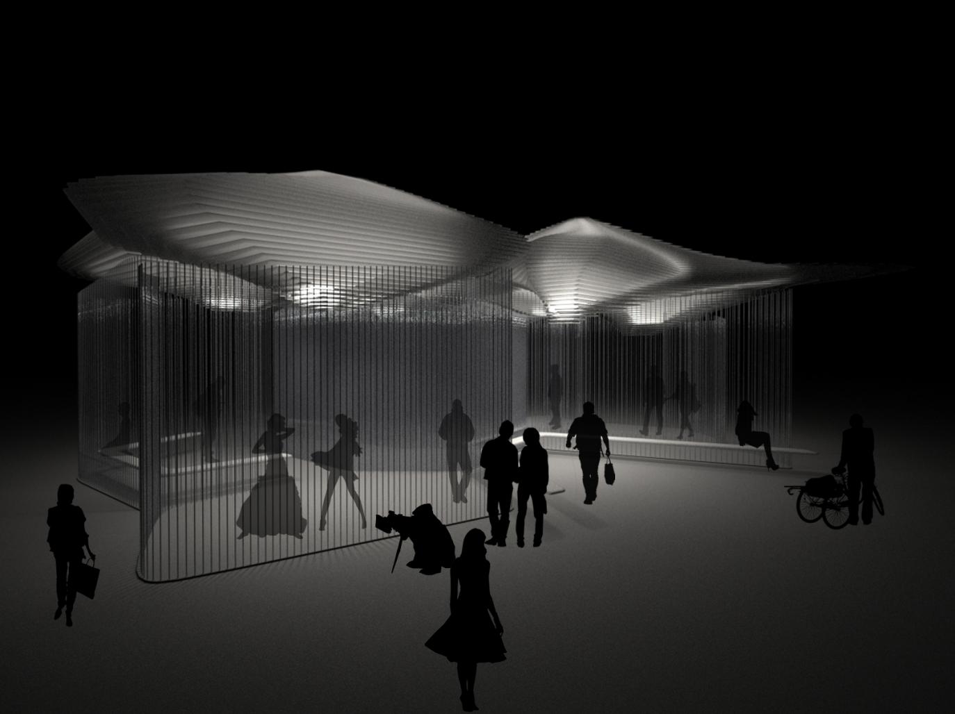 Is it possible for a pavillion to convey the spirit of a city and become a landmark despite its transient nature? The UiA pavillion is concieved as part of the city scenery and at the same time as an intense memory collector. It borrows its form from the unique snowy mountains surrounding Torino and its main characteristic will be the ability to collect and store the UiA events in its form, projecting them back on its surface informing the visitor.