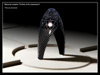 The visitors are met by "The arc of sorrow". The arc {in our case it is cupola-arc} semantically means the entrance into the sacral space, prepares the visitor for the transition into the other space, the space of sorrow and, possibly, of repentance, of guilt before the innocent victims. When people loose their relatives, they put on the appropriate clothes {for example black clothes, women put on the black veil}. Our arc is of black color, but "dressed" in the bright steel lace {veil}. The dome {without the beginning and without the end, as the geometrical figure - sphere} means that the memory of innocent victims will last forever.