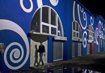 A couple of adjoining halls, one of them 50 feet high, presented a unique challenge. Bereft of any redeeming features in the interior, the cavernous halls seemed barren. We drew inspiration from the brand logo, specifically, the tail of the sea horse and projected it on to the walls. In its dramatic avtaar, the tail curled to become out of scale embroidery patterns cutout in plywood, painted in brand colours. With this design move, the space acquired a degree of freshness and appeal, something it was sorely lacking otherwise. We increased the natural light inside by adding skylights wherever possible and added necessary artificial lighting in keeping with retail display requirements. The graphic patterns of inside are carried on to the front façade in a subtler form.