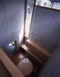 The life environment on the ground floor in this house should be kept apart from the road, avoiding from the people’s eyes outside wherever possible. The south corner of the site has a small courtyard enclosed by L-shaped wall, planted the trees: Quercus myrsinaefolia in front of the wall outside, Dogwood inside of the wall, providing the court appearance of depth. Through the planted courtyard, the season’s transition with the beauty of the scenery and the changes of weather bring various relations between inside and outside of the life environment.