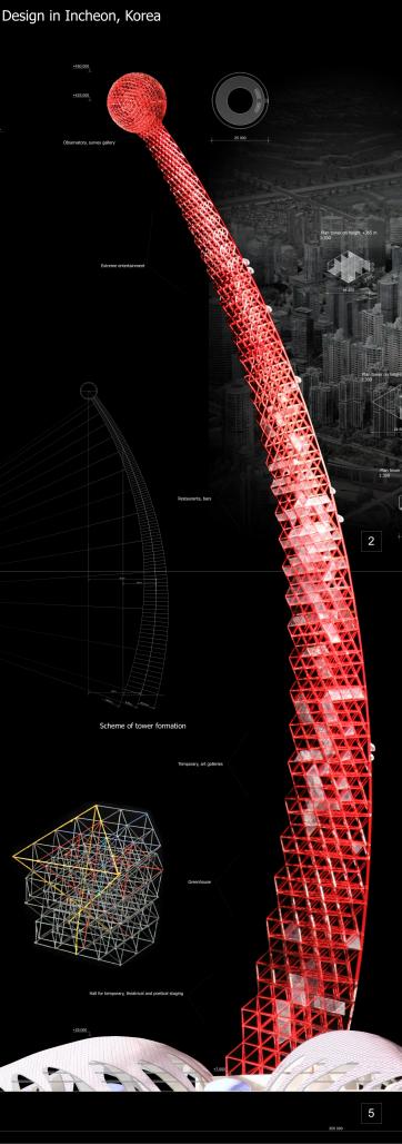 The fifth will be convinced of architectural advantages of a tower, that its composition is dynamical, has scale effect and expresses modern art tendencies, its image is exclusive, in the whole world there is no similar.