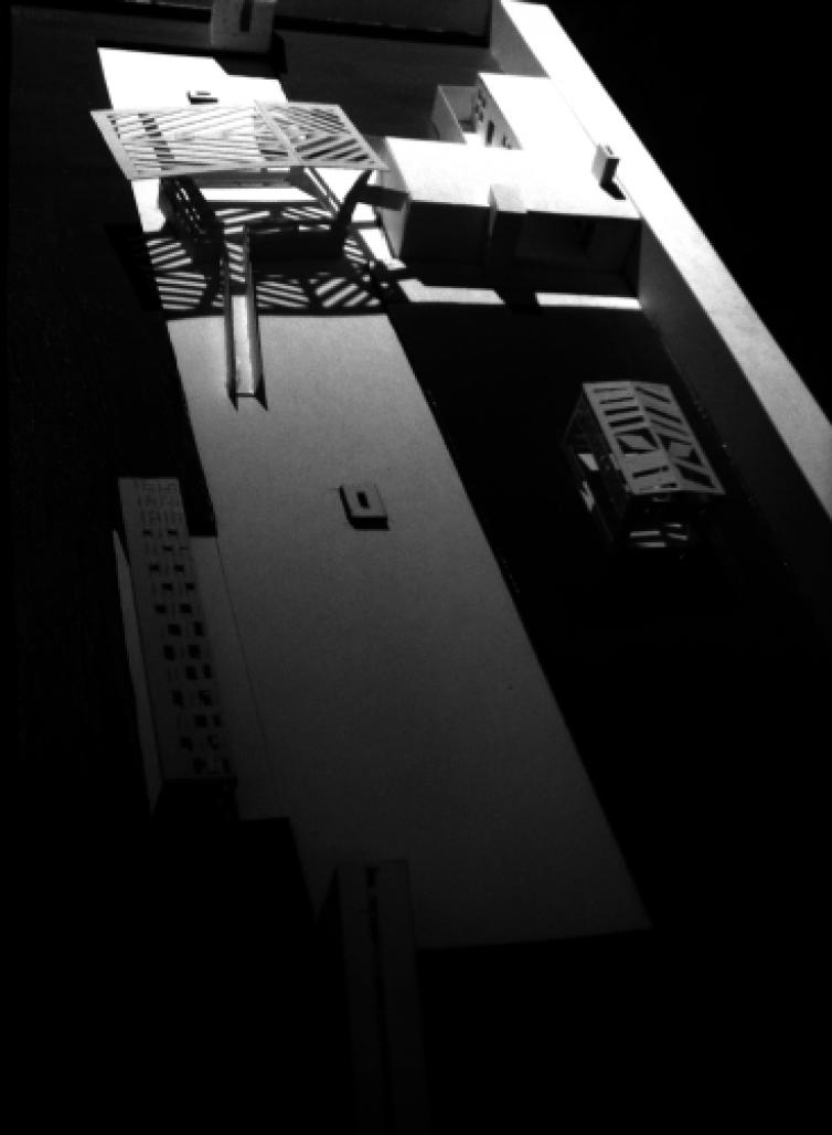 space, the rooms , shaded sitting areas and Green areas planted with grass. All built objects are arranged in a way to enrich the experience of moving through the different parts of the design. The long paved space was interrupted with the protruding covered sitting area, the focal point of the arrangement. Variety was introduced into the design through variations in shapes, heights, surfaces and degree of enclosure. The