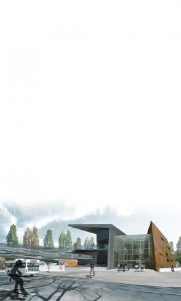 he proposal represents the landmark of a pilot urban project, that aims to valorize the potential public spaces that assure the interaction between the river crossing Bucharest, and the activity poles generated by the convergence of the different sectorial zoning.
