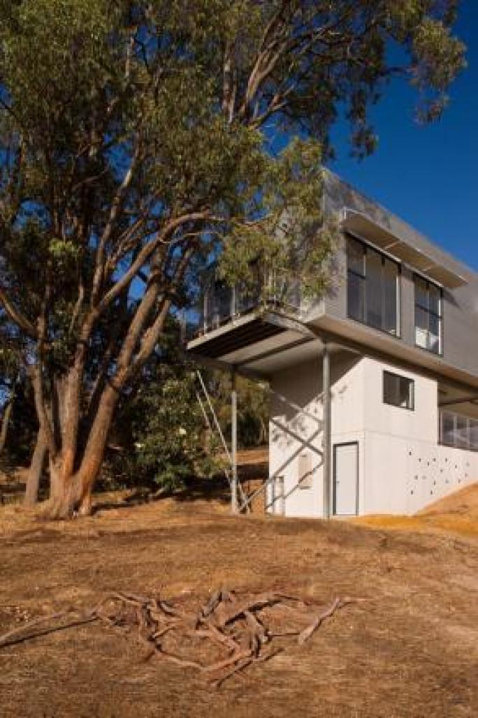 This project began as a delicate line in the landscape occupying the space between the ground and the sky. This concept evolved following discussions with the client and a desire to live like the Orang-utans in the iph architects designed Perth Zoo Orang-utan Enclosures {1999- ongoing}.