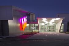 Commissioned by the Queenstown Lakes District Council, the inspiration for the concept came from the rugged mountain landscape that dominates the site. In plan the building is a series of wedges that fan around the cricket oval. Each wedge leans to the west, as if deformed by the forces of nature. This theme continues throughout the building in the pools, spaces & minor elements.