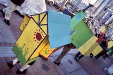 Correcting Obihiro city in Hokkaido by an impact of children`s architecture. An instant village took place when the children needed a rest. Church gossiping with a grocery store. Casagrande & Rintala for Demeter Contemporary Art.