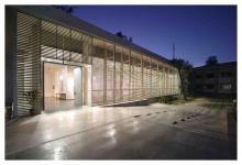 The art gallery has three main parts to it. The front gallery that is naturally lit and primarily designed for the dispplay of popular art and student exhibitions. The second space is the main internal gallery which is light by controlled light and canbe divided into 2 smaller galleries with the help of the central pivoting wall. This gallery is designed for the great university art collection, as well as for external artists who want to exhibit their work here. The third exhibition space is the open air sculpture court at the rear of the building.
