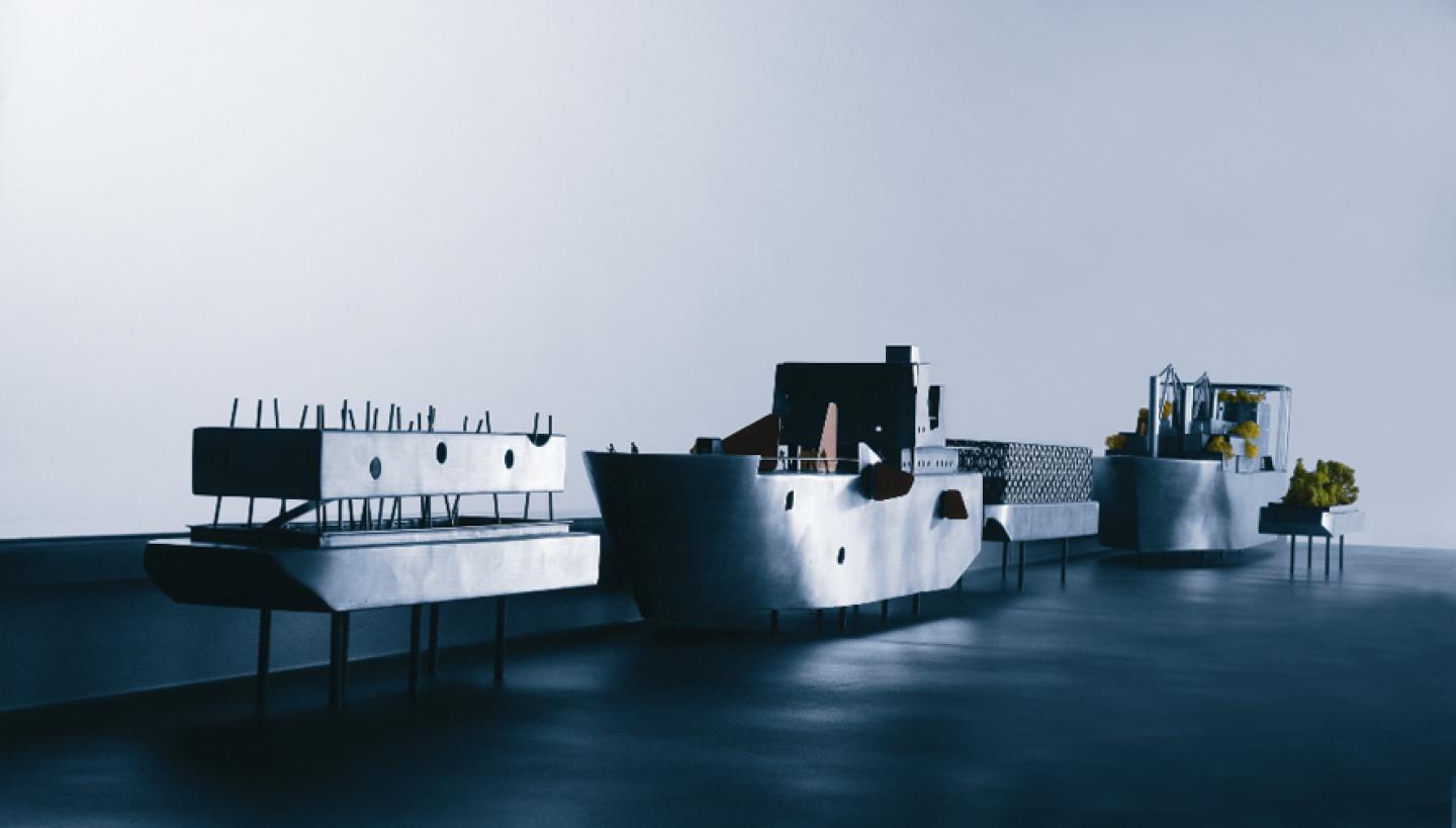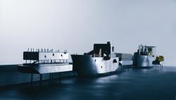 Recycling strategies for industrial ships out of duty activating 31 Danish harbor towns and cities. Fixed platforms as Bio-Ship, Community-Ship...PIF task force CREW31 for Venice Biennale 2004. "Without his ships man is just a common ape."