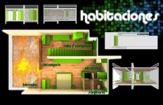 The project begins in a big area witj a big decline and a master plan for mixture uses, this area is one of the few natural areas in the city, an area completely cover with trees, for that reason the principal direction of the project was dont affect the ground and the apareance of this area, the program requires 12 to 15 rooms with 2 suites, an spa, restaurant, bar, lounge, recpetion, administrative area, pool, and services. The concept for the project is to compare the entire area like a screen, and all the spaces are compare like the pixels of the screen, thats the subject of the entireproject, every space or building has in the interior a differnte color each one, and in the exterior has green tones in the same tones like the context, the 13 rooms has 13 different colors and the 2 suites are black and white. The project adapt his self to de decline, with separate small buildings for each requeriment of the program, respecting the trees, all the complex {buildings and circulations} are 1 or 1.5 meters off the ground, to permit the natural down way of the water, and to dont damage the original ground, all buildings have green covers to obtain water, and all are building with prefab elements, that ensammbles like a puzzle, that permits that the construction are a dry construction, all the complex has the caracteristics to be a green building, and the most important thing dont damage the original area, and be camouflaged in it. For more info check: dripbook.com/fodasilva/book/pixel/