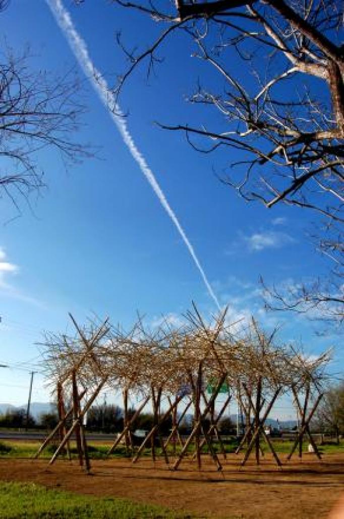 The team collected approximately 3,000 rods, were cleared of foliage and ordered according to their thickness for different purposes, the structure and cover.