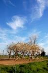 Cane is working as a structural element of the work, which was extracted from a river nearby.
