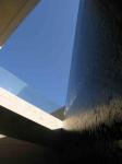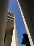 Second: the building sits on the ground by means of two large 98 foot long walls {East and West façades} which contain a series of openings and windows of different sizes that reflect the internal program. At the entrance, the building conforms its urban façade with a system of horizontal windows and a coronation above which frames the entrance.