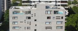 The challenge offered by this building was to resolve the theme of apartments with varied programs within a 25’ 7” frontage. Additionally the Golf neighborhood building code, in this specific case of “remnant site” obliged the building to be restricted to a straight bay, not allowing any element to project forward from the façades.