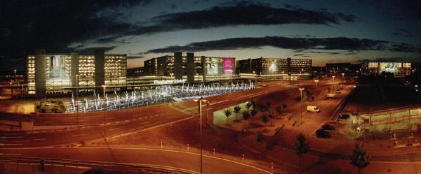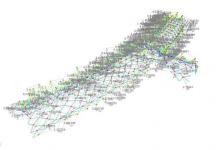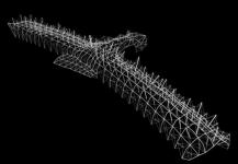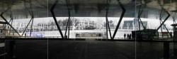 Proposal for a changeable tensegrity roof structure at Zurich International Airport. The structure is designed parametrically and uses a randomised arrangement of compression members to create a light, transparent and mirage-like structure which occupies a vacant site outside the main terminal building.