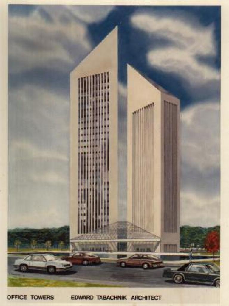 Office Towers. Ontario. Canada. Design Proposal. Perspective drawing by Edward Tabachnik.