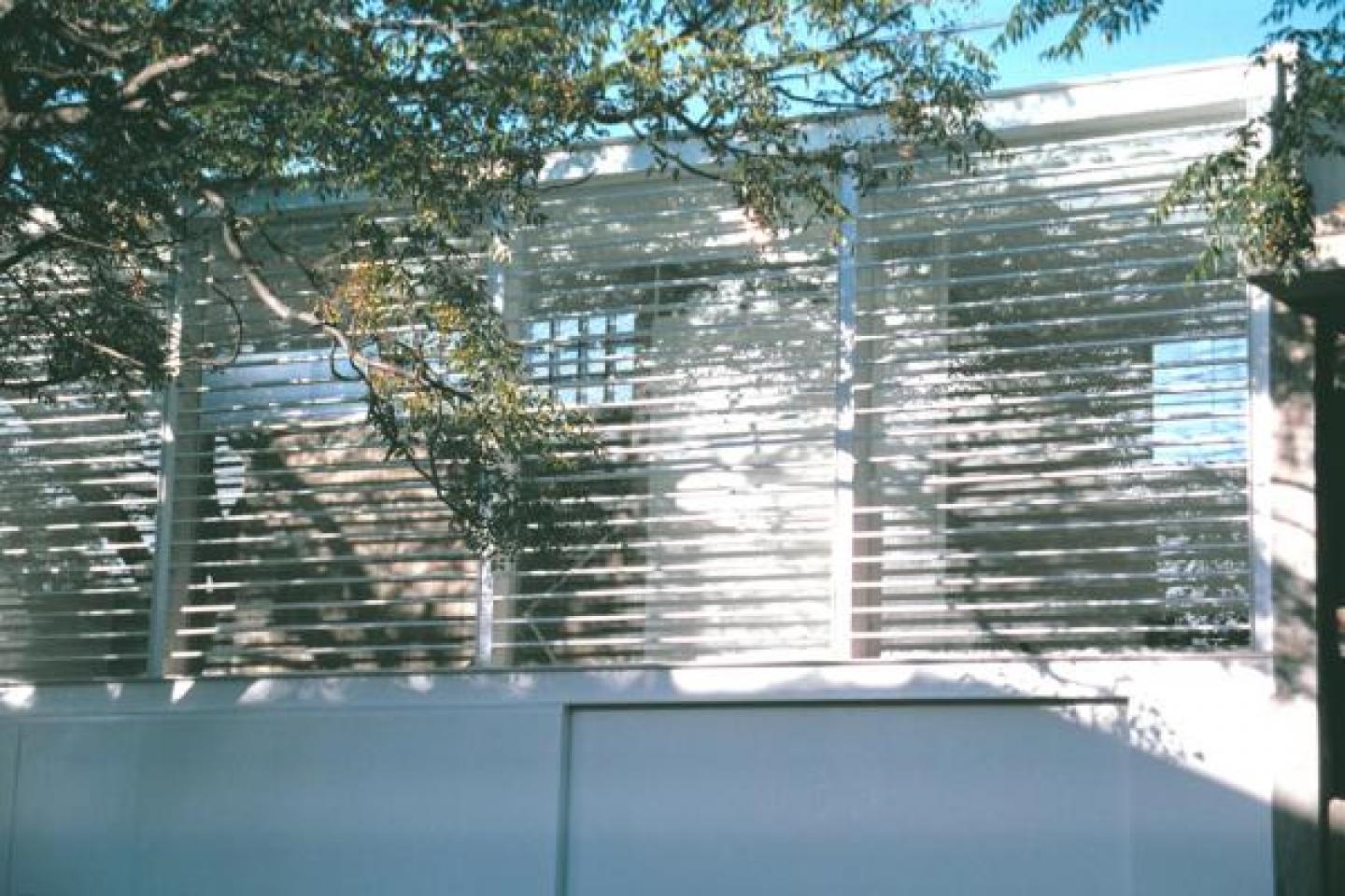 Por un lado, desde afuera, la transparencia de la hermética pared de cristal da cuenta de los diferentes grados de profundidad de la planta; por otro, desde adentro, el árbol resguarda la entrada del sol y se interpone, verde y perenne, entre los parasoles y el cielo.