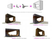 The dimension of that pieces, the bigger is 50 cm. long, is taken as a condition for design. Thus, the structure of the box {named as Bräckzen}, is shaped as an irregular web, built out of small wooden modules that doesn´t go over 16 cm lentgh.