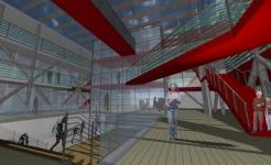 UN CUERPO ARQUITECTONICO DENTRO DE UN MARCO SIMBOLICO. UN VOLUMEN CERRADO, NEUTRAL QUE ES PRECISO FRANQUEAR PARA ALCANZAR LA RIQUEZA INTERIOR DEL ESPACIO, un CINTURoN DE PABELLONES Y OFICINAS.