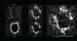 Transforming interest levels into mathematical data, we made conscious asumptions around a programatic platform, then coded our results into specific intensities. These then were able to influence and affect a grid blanketing the site. This fields of lines was then used as a formal technique to articulate the olympic park, the shell and the inner organisation.