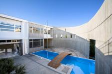 That is why the compact skin, which encompasses the residence and enclose the open space revealed on the west. The natural elements enter the residence changing gradually in colours and being filtered at the top of her volume. As for the water, being free and erosive is piercing the skin to a point at the south.