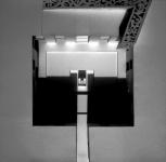 corner of the building and the stairs are lit naturally with a skylight, ending with a protruding articulated long opening overlooking the courtyard. The structural system created the form of