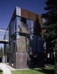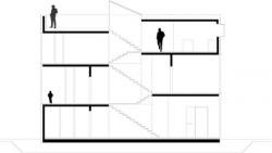 Originally as roof space conversion conceived, the draft finally inverted itself on the remaining, narrow garden surface. This reversal is reflected also in the facade panels used inside. A glass bridge in the last floor shows the connection to the old building.