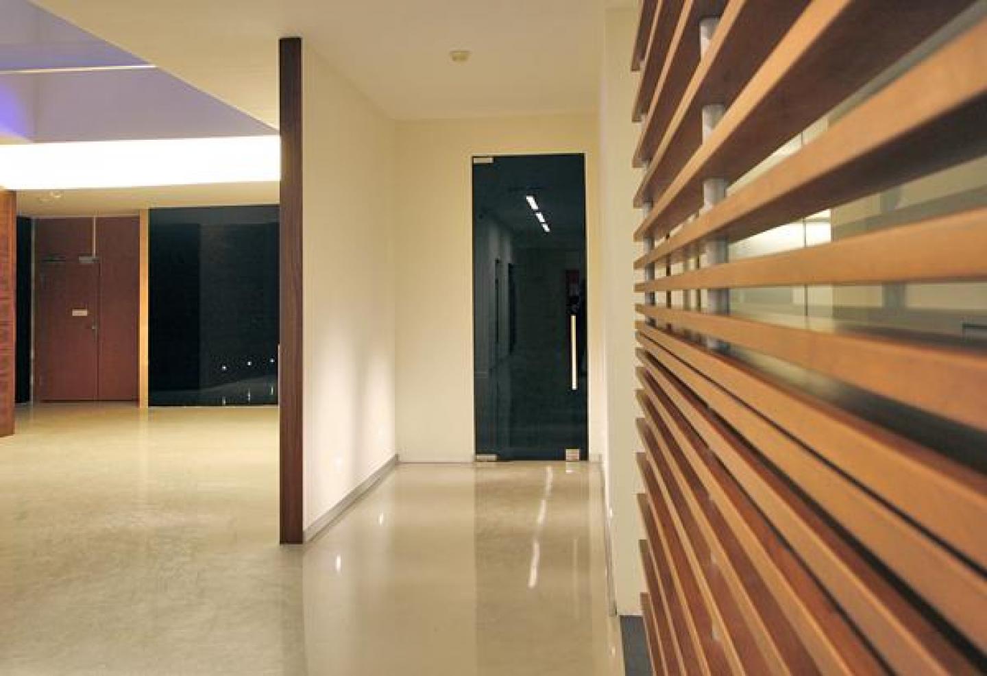 All working areas are designed to be seen through the transparent glass and wooden blinds. Wooden blinds become densely massed on the mid parts and become loose through the upper and lower portions. The epoxy coated central space is defined by the secretariat and the meeting room behind. The corporate identity of the firm has been redefined through the dominant colors of the logo and materials were chosen accordingly. The lighting system is another important issue for the project that uses both direct and indirect lighting, to satisfy the needs of the working space, meeting rooms and common areas which were given great importance by the firm. One of these common areas “The Lounge” is designed to be a kind of relaxing and gathering space for the employee. This space has its own kitchenette and bar also a small library, a billiards table and various sofas. The other room for company meetings has comfortable sofas, coffee table, side tables and tv-video unit just to make employee perceive as if they are talking to friends in their living rooms.