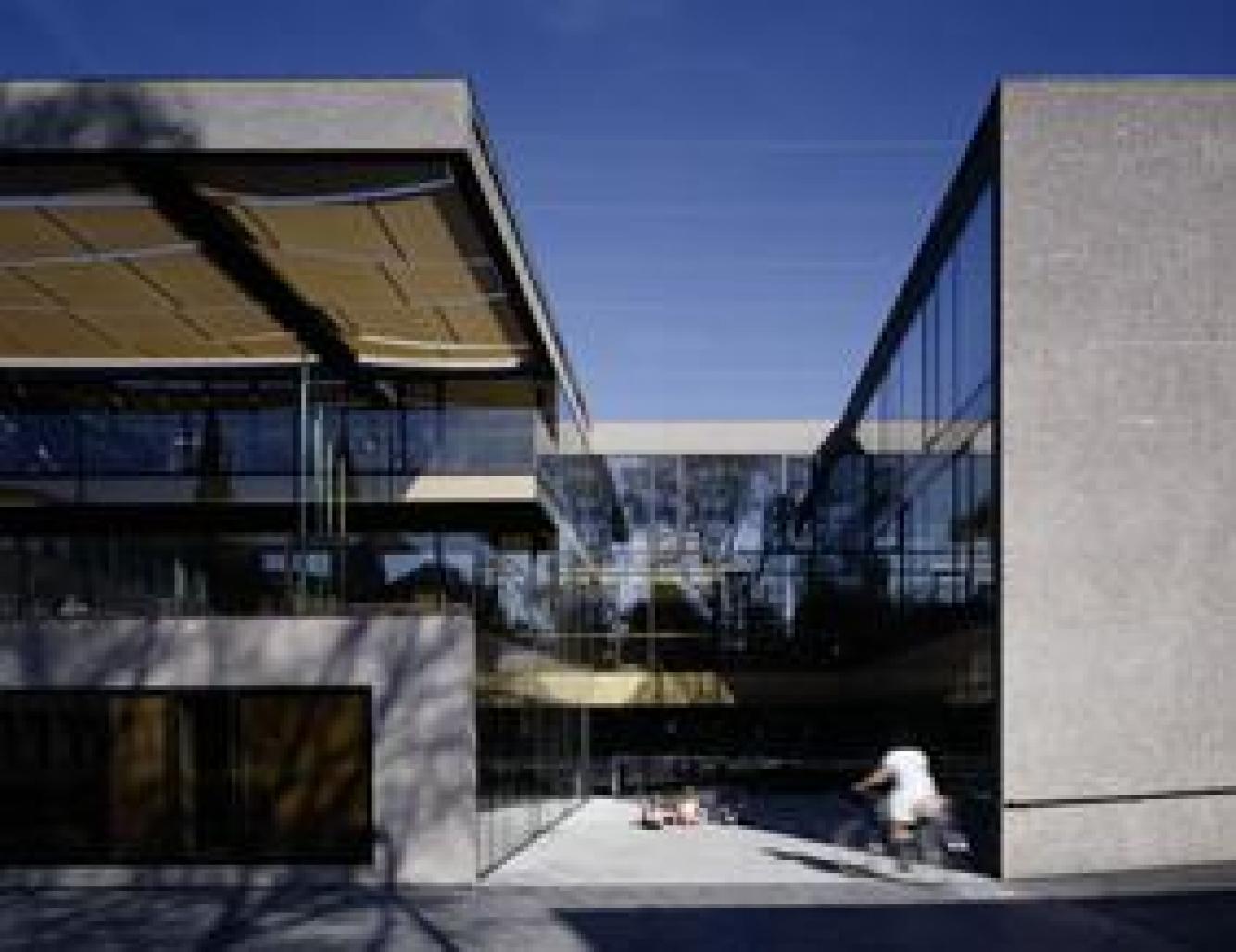 Appearance and structure are coined/shaped by two deeply cuts in the building. One of the two openings lets the new green park penetrate by southwest the inside of the building. The other one releases the exposition to the sun on the existence after northwest.