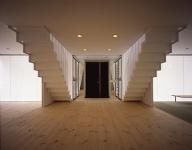 House TTN was designed to accommodate three families – the parents and the families of their two daughters. They had decided to live together again with the birth of grandchildren. Thus, the main objective for House TTN is to provide the necessary functions for an “urban” extended family, accommodating the needs of modern nuclear families who have grown accustomed to independent life but have chosen to enjoy the benefits of being part of a large family. The first request for this project was to have a sort of collective residence to accommodate three homes, a plan which would completely separate the families within the same building. However, after much thought on how to maximize convenience, the effective and rational use of the site, and the pleasure of each other’s company, House TTN decided to take a semi-independent, sharing approach. In order to have more than one nuclear family live together as one, it is essential to secure a comfortable distance within the design. Thus, each family has their own independent kitchen unit, bathroom, and toilet, but the homes are adjoined through the ground floor area and common deck – inside and out. The parents’ living space is located on the ground floor, with a highly independent main room {that is also shared by all three families} as well as private rooms {one Japanese-style room and one bedroom} opening towards the outside. The first and second floors are divided east and west, creating living spaces for each daughter’s family. Outdoor common decks in between the two sides of each floor serve as both converging points and buffer space. Transparent glass and sudare or Japanese wooden blinds are used on the common decks to separate the families but at the same time avoid complete privacy. It is possible for each family to go about their business independently, but these purposefully built common areas make it possible to achieve a higher quality of life. A comfortable distance is achieved by softly compelling the families to come together. Another important aspect of House TTN was its structure. As the decision had been taken not to separate the homes completely, the residents wished to retain an option that would enable them to cut the building in half, left and right, in case they wished to do so in the future. In order to make this possible, the two sides of the structure including the foundation are completely independent of each other, and designed to guarantee durability after being divided. Of course, if two new separate buildings were to emerge, they would both need to pass the various building regulations. Therefore, this aspect greatly influenced the initial plan and form of House TTN. However, it may also be said that because of this requirement, it was possible to achieve a bold design, shaping the areas that would be removed if the house were to be divided into outdoor common decks. It is unclear whether this option will be taken in the future, but having an alternative will surely encourage friendly and active communication between the families.