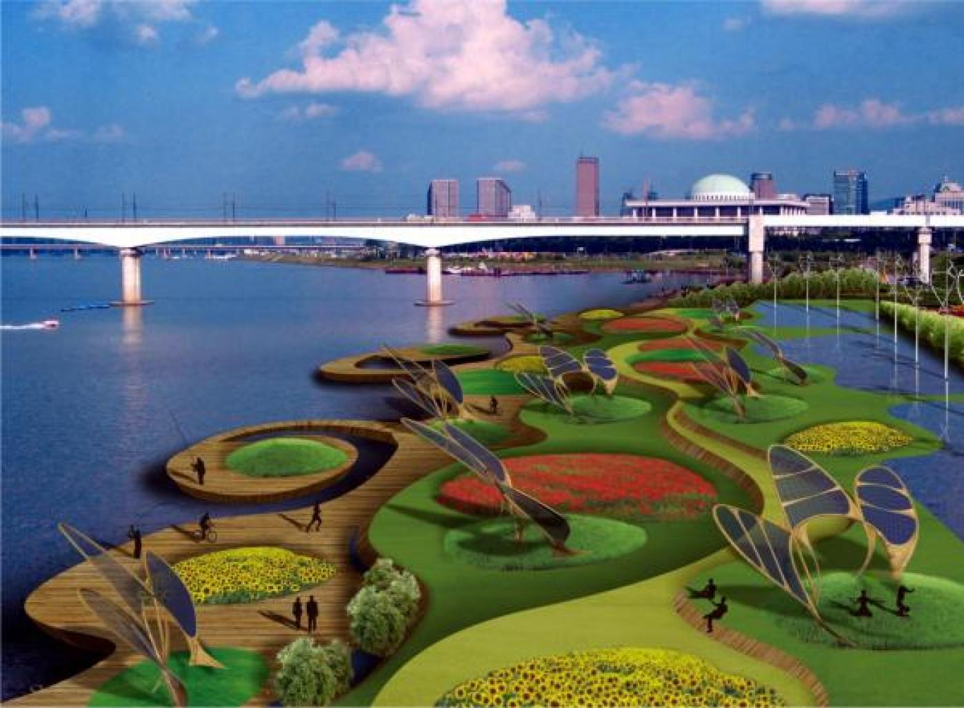 The proposal is to raise a urban park with sustainable terms, able to take advantage of the natural resources by means of the use of renewable energies to be self sustainable, as well as the impulse of the developed urban activities that borders the river Han Gang for the Citizens of Seoul.