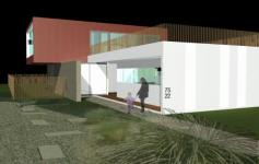 The concept for the P3 model is exclusively as urban infill to meet the requirements of a standard 50`x125` lot. The underlying thesis of the project is focus on the back yard and privacy. The main living area opens up to the back yard as an oasis and escape. The program consists of living, dining, kitchen and den on the main level with two bedrooms, a bathroom, a master bedroom with a bath and access to a 800 sf deck for entertaining. The materials chosen offer a tension between translucent and solid to allow for privacy while still allowing natural light. Window placement also allows for privacy along public/neighboring areas. The open stairwell serves as a funnel of natural light to the bedrooms and main level.