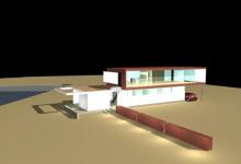 The concept for the P1 model is to elevate all living areas above the land. A majority of people spend their time in the living, dining, and kitchen areas while spending a minimal amount of time in bedrooms. Ideally this 2 story design would be located on a secluded parcel of land, the second level is elevated above the land where individuals become a voyeur of the land: the polar opposite of the first level where you have the ability to become an active participant within the land. The program consists of a library/sitting area and four bedrooms on the first level. The second level has dining, kitchen, living and den - along with a roof top deck and movie screen. The ideal inhabitants would be a single family and it could be used as a primary residence or secondary vacation home. The clean lines of the design were derived so that the architecture does not compete with the natural environment, but instead becomes a tool to re-discover nature.