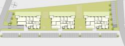 The construction volumes 1 and 2 take up 22 flats for rent. In the third house 11 free-hold flats are arranged.