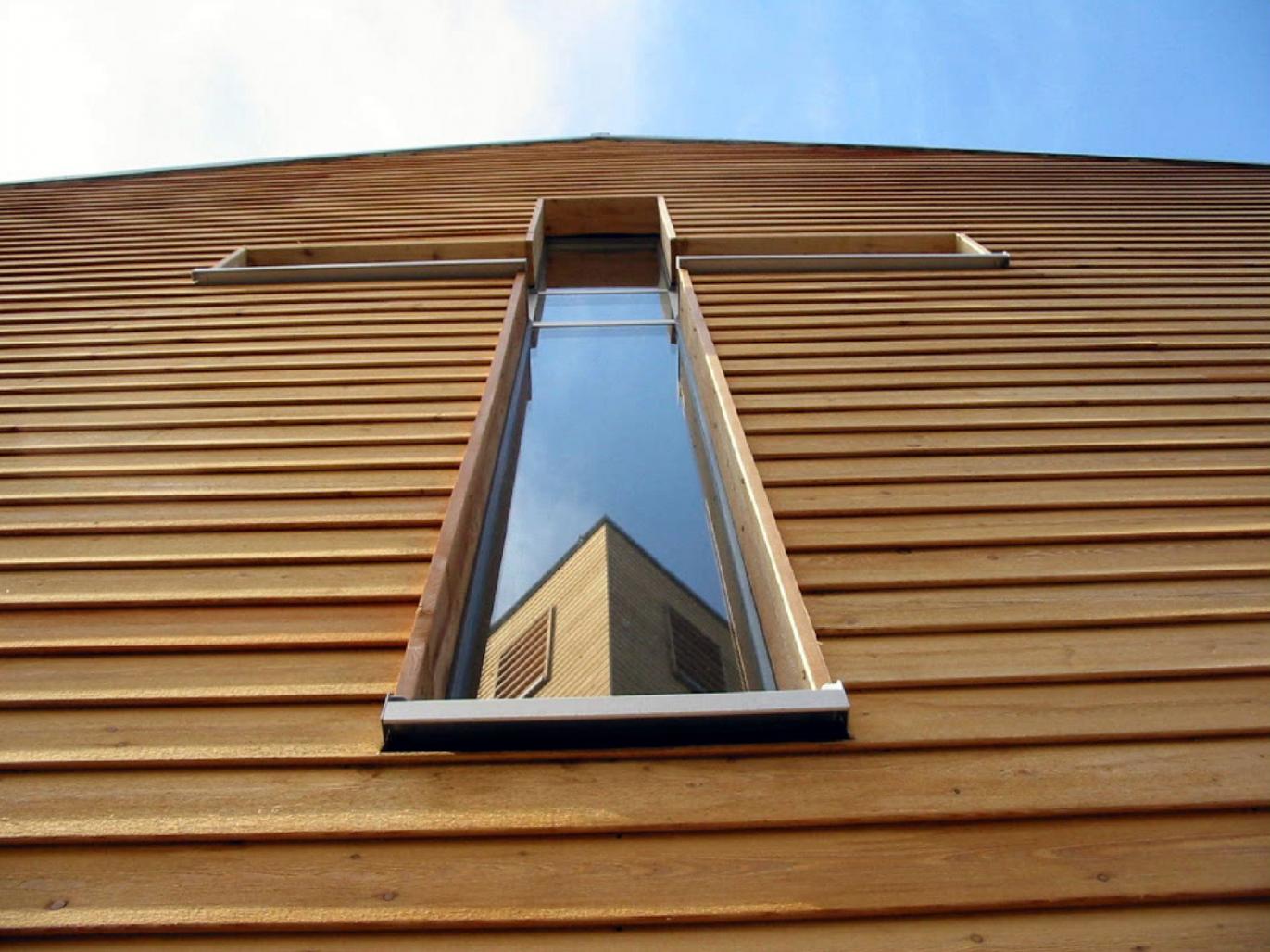 Predominantly the simple construction constists of prefabricated timber frames with a facade of larch wood.