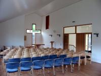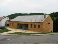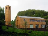 The community center “Haus Emmaus” consists of three independent parts. The main use as a church with a bell tower is completed by a common room with an own accomodation and a caretaker flat.