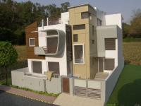 A house built on 300sq mts meant for residence of 4 bedrooms with terrace garden at top and second floor the staircase has been kept in front treated with abstract windows and cladded with cream tiles. The balcony on the first floor is in curved R.C.C which is replicated at the side entrance the top floor has a pool which is open to sky and has sliding door which be enclosed for privacy.