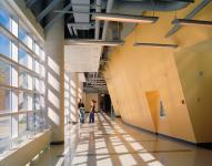 With the Faculty of Health Science’s Centre for Learning & Discovery NORR was asked to design an atrium addition to the project to honour Mr. DeGroote, a major donor to the University. The four story glazed atrium provides a light filled, winter garden, featuring medicinal plants, a fountain and pools. The atrium gently curves toward the main building’s entry and provides informal space where students can relax, study and mingle. In addition, the atrium offers a unique backdrop for Faculty announcements, special events or fund raising dinners. A dramatic, glazed meeting room is accessed from the third floor and is suspended into the atrium.