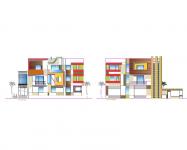 Guest house is made in 700sq. yard. It has 18 rooms of two different classes, excusive and standard class. Building has nice landscape in surrounding, as you entered in building one can noticed nice interior and huge mass. Building mass is based on square and rectangle and Straight line. Its elevation is treated with different geometrical form. Colour has been used predominantly. Elevation has bold line. From balcony of room one can take feel of landscape. Landscape of the building has been done so that it looks as the extension of the building itself. It includes water body, with green area and lots of elements create a sense of liveliness. all the room has been arranged in such a way so that one can get a pleasant view of the landscape area from the room itself.