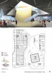 The public facilities of the library are located below and above the bar. These areas are designed as a continuous space modulated by the external skin of the building. A glass membrane separates the acoustics and the climate of the different functional areas. The external envelope functions as a climatic and sun shading skin. Its permeability and transparency reacts to the different programmatic conditions: completely transparent at the top, punctuated with skylights over the reading rooms, open-able windows in the office and permeable at the ground floor.