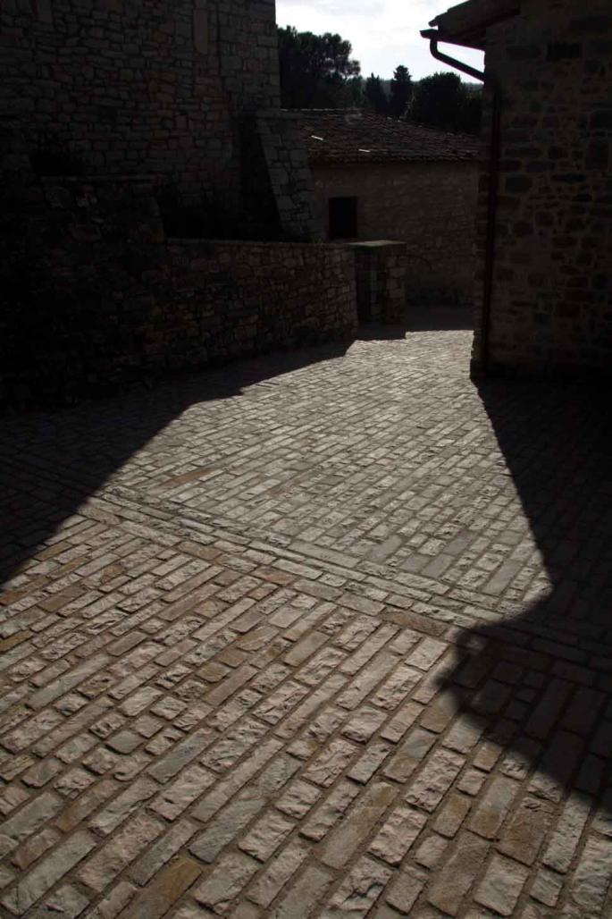 Maintaining the character of the borgo these hand cut stones were used for the pavement with thickness of 12cm, constant width and variable length, 30, 40, 45, 50cm.