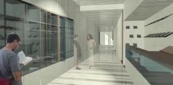 The facades are solved by means of skins, which swell content, filtered sunlight and using light as a material of architecture.